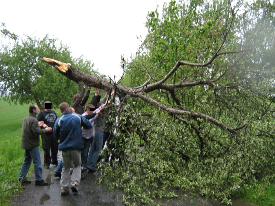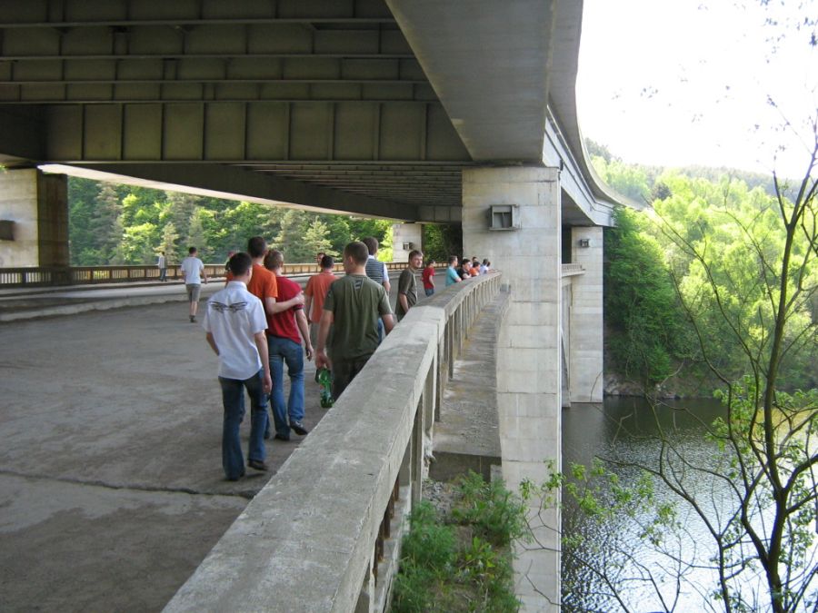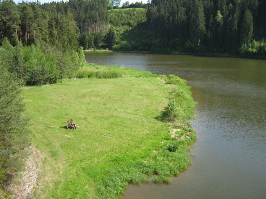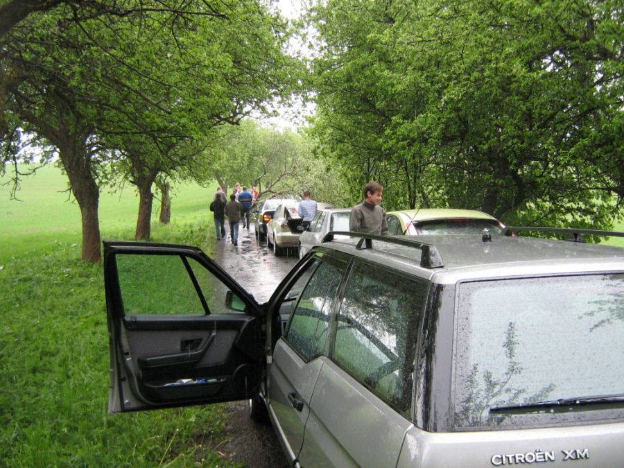 Při cestě z Orlíku na “tajný cíl výletu“ nás překvapila průtrž mračen. Jedna paní na kole na nás něco mávala, slezla z kola a “čuměla“ za náma. Brzy nám došlo co nám chtěla sdělit - neprůjezdná cesta. Jenomže se našlo pár chlapů, kteří spadlý strom odstranili. Škoda že nevím jak dlouho paní čekala, až se ti pitomí pražáci budou vracet zpět.