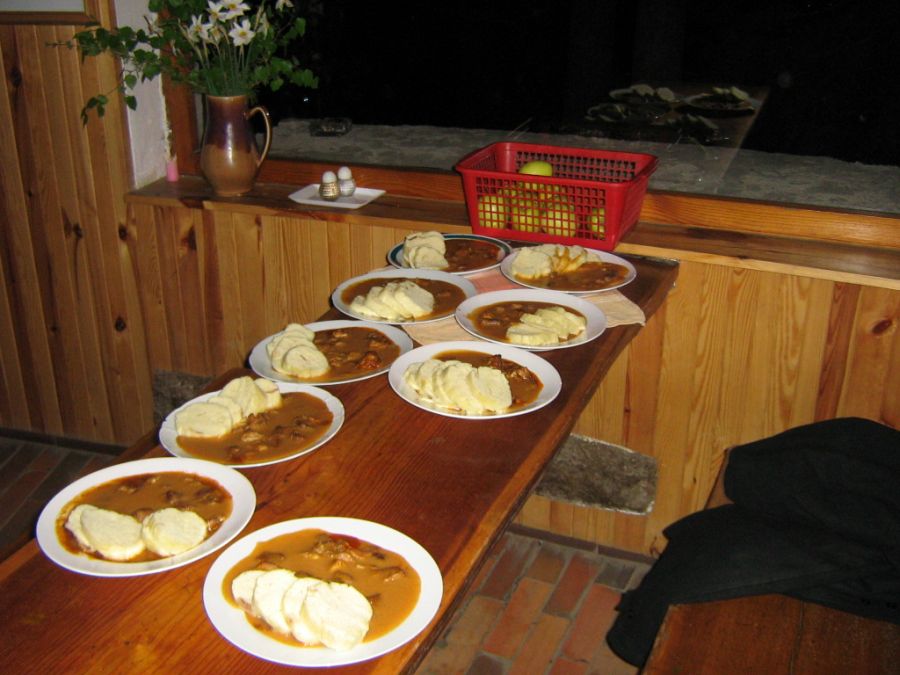 Já jsem dorazil až před půlnocí, protože Vasil, který se měl se mnou svézt, se nemohl stále rozhoupat, nakonec zůstal doma. Lidí co nepřijeli bylo asi více, dle zbylých večeří. No alespoň jsem měl chatku pro sebe.